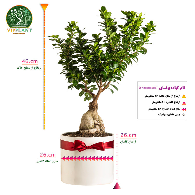 ارتفاع از سطح خاک 46 سانتیمتر، ارتفاع گلدان 26 سانتیمتر، قطر دهانه گلدان 26 سانتیمتر