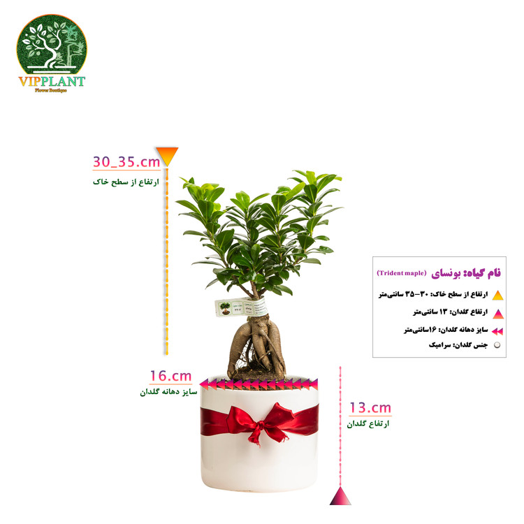 ارتفاع از سطح خاک 30-35 سانتیمتر، ارتفاع گلدان 13سانتیمتر، قطر دهانه گلدان 16
